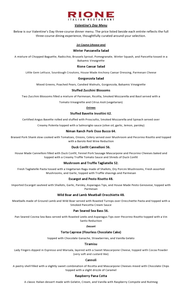 Join us this Valentine’s Day for an unforgettable three-course dinner featuring a mix of beloved favorites and exciting new entrées. Think Escargot Risotto—bold, indulgent, and not for the faint of heart. Hey, not everyone is that adventurous, but it reflects our commitment to going big and trying something new.